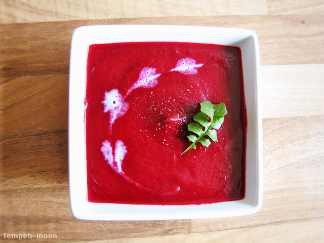 En una olla con aceite de oliva sofreímos la cebolla cortada a trozos, luego pelamos las remolachas, cortamos también a trozos y salteamos. Cubrimos con el caldo de verduras y dejamos que hierva durante 20 o 30 minutos, hasta que la remolacha esté blanda.