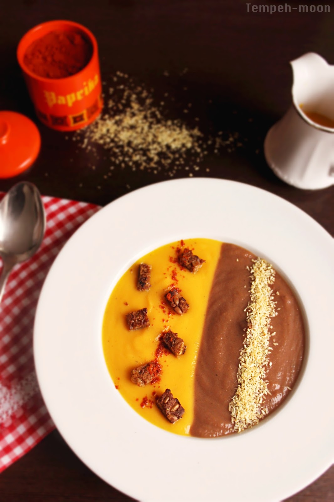 Luego trituramos bien hasta que quede cremoso y le añadimos los ingredientes a cada una hasta conseguir dos cremas sabrosas de estilos muy distintos.
