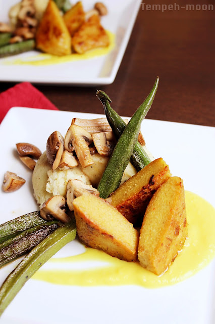 - Solo nos queda servir los platos de forma apetitosa, las okras son unos vegetales de Etiopía muy parecidos al calabacín y nada picantes! ;)