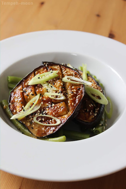 Este plato se prepara comúnmente con Tofu, pero la variante de berenjena le da una cremosidad y sensación de saciedad especial.