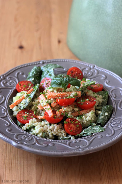 La cebada perlada es un cereal muy interesante con el que se pueden preparar distintas recetas, desde sopas, estofados, y ensaladas hasta embutidos o postres! en esta receta la hemos utilizado como a mi más me gusta, con una deliciosa salsa y verduras frescas! ;)