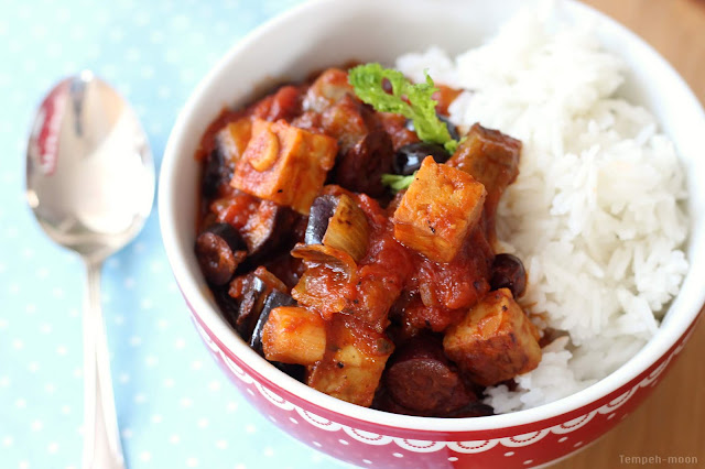 Finalmente añadimos el tempeh y las berenjenas a la salsa, y ya podemos servir! ;)