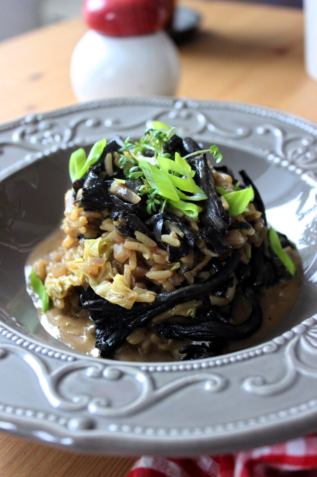 Emplatamos con unos germinados y un poco de cebolla larga en juliana y listo! ;)